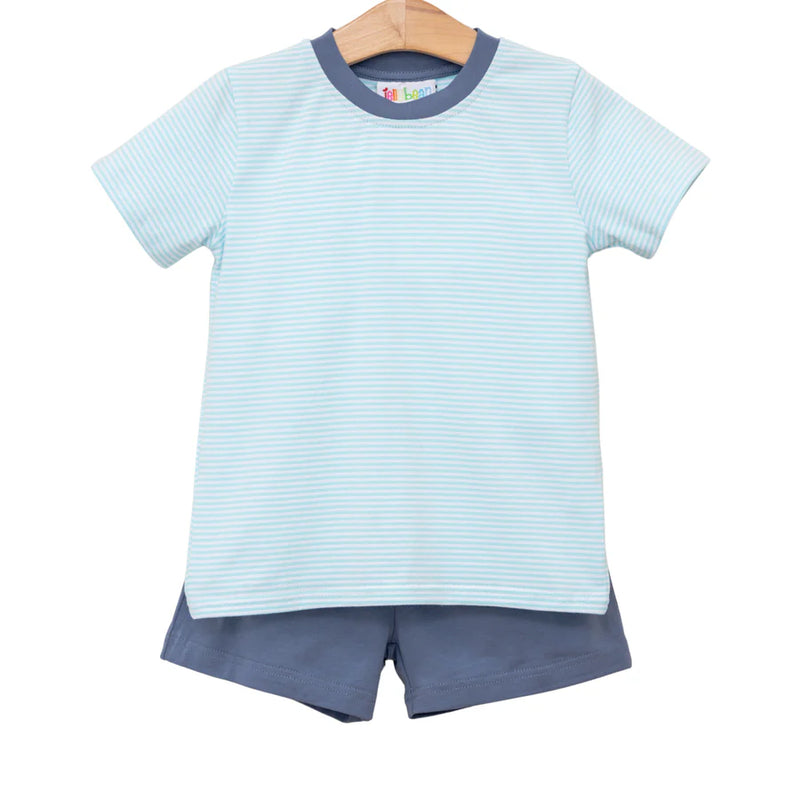 Graham Short Set - Aqua Stripe and Dusty Blue
